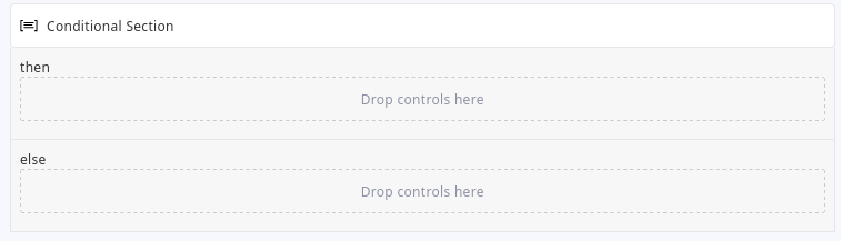 The Conditional Section dynamically displays different groups of controls to the agent based on the conditions of the current interaction. This allows you to create forms that only show elements relevant to the interaction. The control functions as an "if-then-else" statement for your form layout. Controls placed in the then block are displayed if the conditions are met, while controls in the else block are displayed if the conditions are not met.