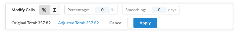 • As a Modifier: When combined with a Percentage or Total adjustment, the Smoothing value applies the change gradually, creating a ramp-up and ramp-down effect over the specified number of days around the selected period.